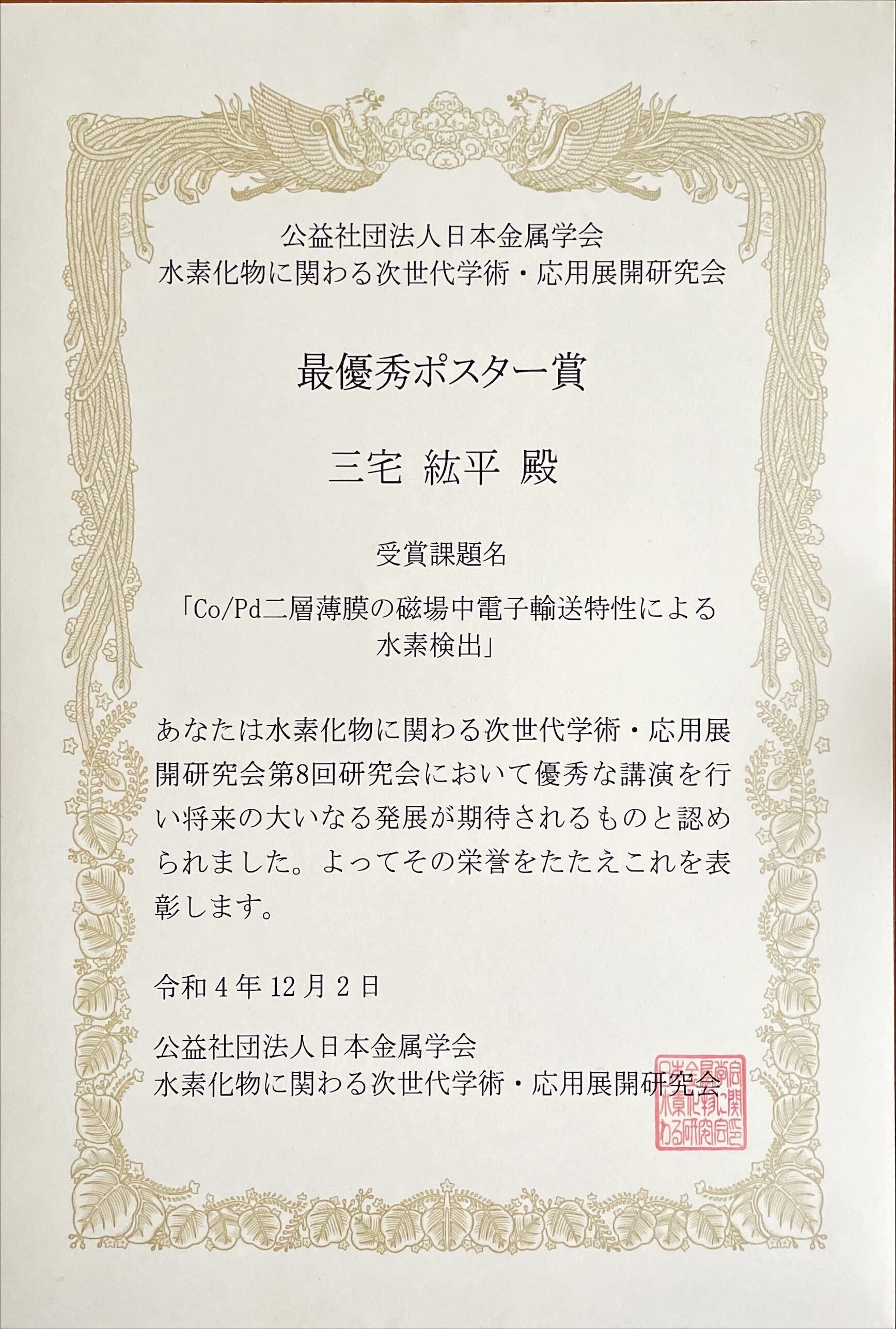三宅紘平 最優秀ポスター賞 受賞しました!